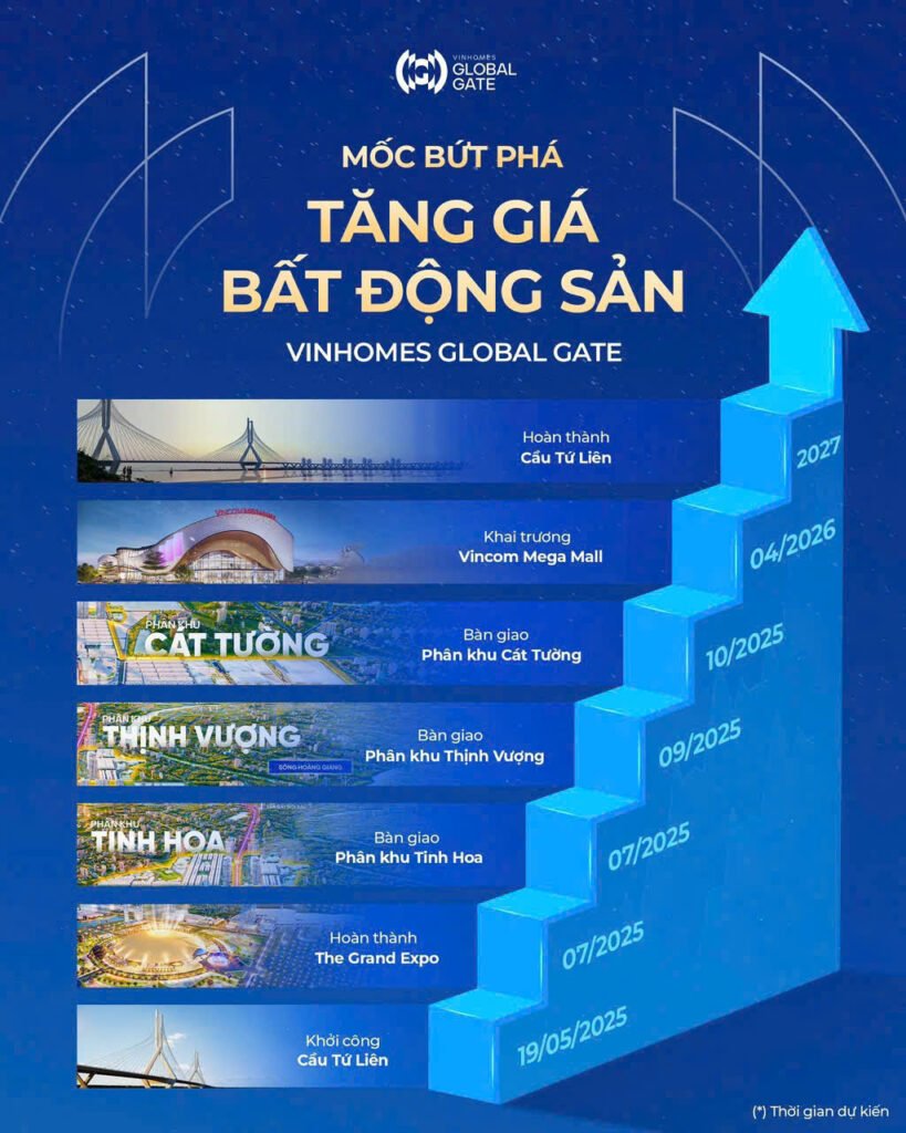 Với sự cộng hưởng từ những cột mốc hoàn thiện hạ tầng và tiện ích quan trọng trong tương lai gần, giá trị của BĐS tại Vinhomes Global Gate đang trên đà tăng trưởng mạnh mẽ.